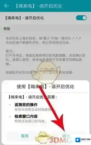 7、打开底部弹窗后点击“确定”,这时新打开页面中的5个设置项开始自动开启权限。
