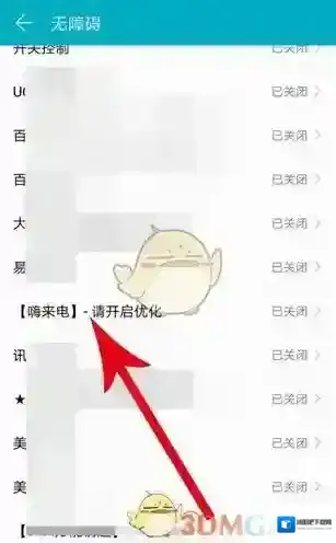 5、打开手机的“无障碍”设置界面,找到“嗨来电”后点击。