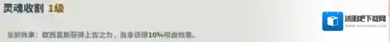描述:当有敌人靠近时,启动灵魂收割,自己每秒损失1%当前生命值,对敌人每秒造成欧西里斯攻击*52%+500伤害。