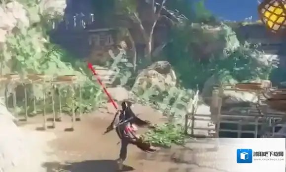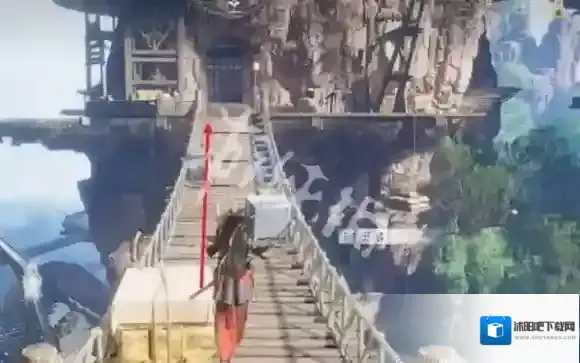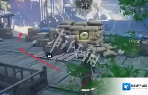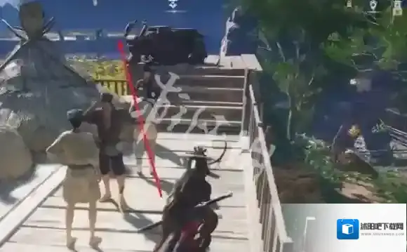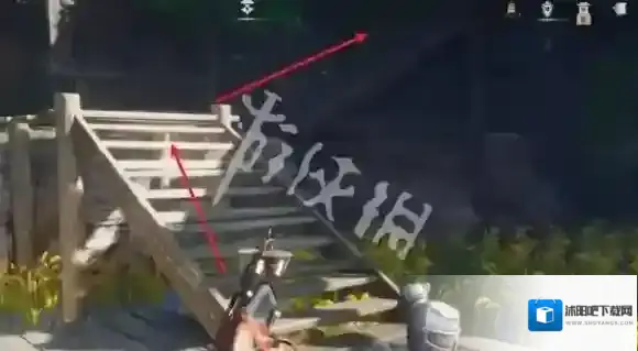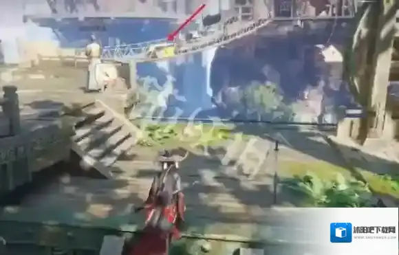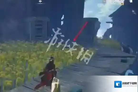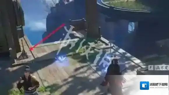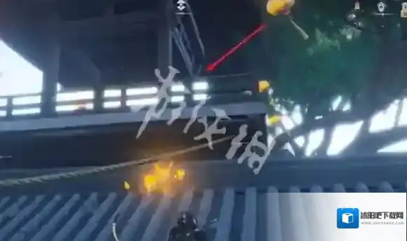 14、跳上来后,去箭头处的凉亭,上面有个猫戏。