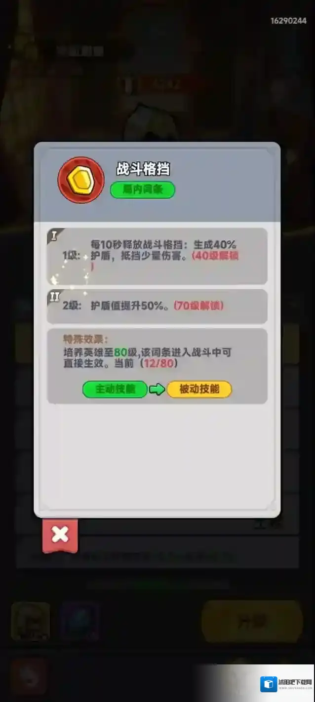 剑士凯伦,初始免费英雄之一,主要技能为盾,每五秒获得最大生命值百分之18的盾,等级达到40级,盾效果提高至百分之27,其次技能为劈斩,对前方造成劈斩范围伤害,第四技能为增加单次技能劈斩次数,剑士凯伦40级,打15关BOSS无限接近无伤单刷属蓝色优秀上品。