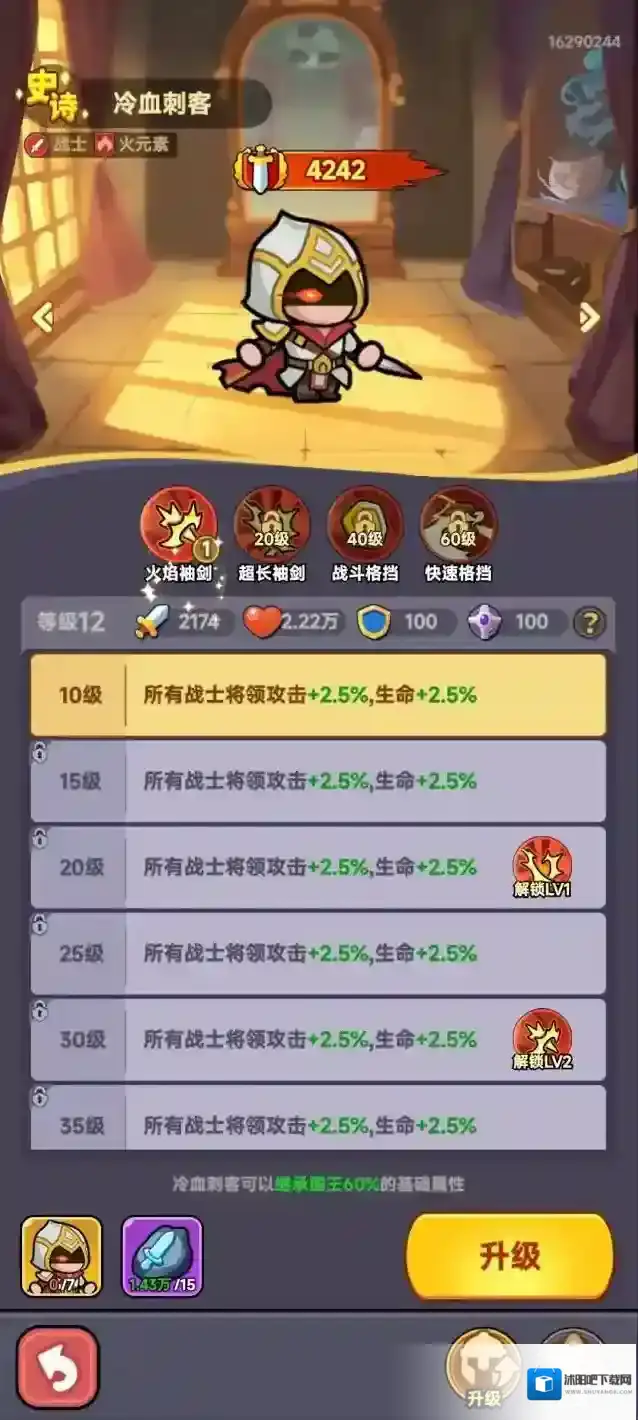 剑圣无名,一二技能都是造成次数类型的范围攻击伤害,不管是前期还是中期都有许多的大数量脆皮小怪,如果运气好,剑圣无名等级比凯伦要高,可以选择他来打到15关,后续解锁的新玩法也需要他,属杰出中品。