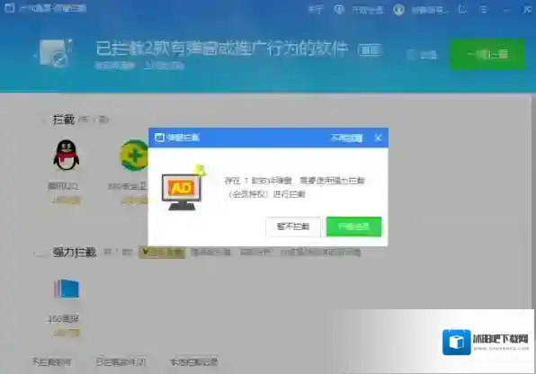 3、最后,勾选要拦截弹窗的软件,然后点击一键拦截按钮即可。
