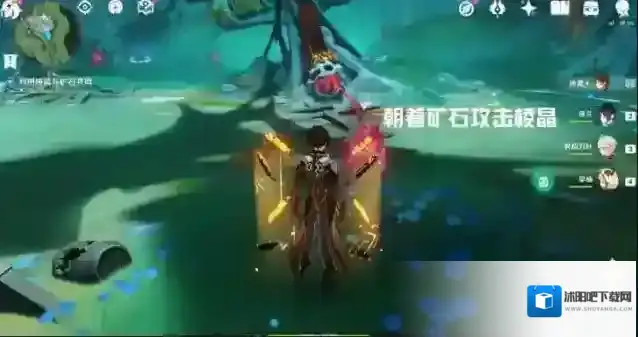 9、找到这里的矿石,朝着棱晶的方向进行攻击。