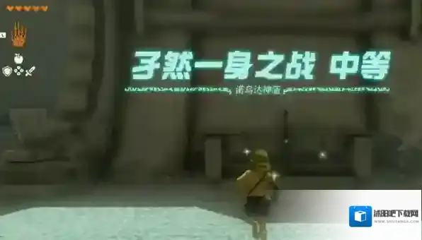该神庙为禁止使用自带武器装备和道具的孑然一身战,在神庙入口左侧可以拿到武器。