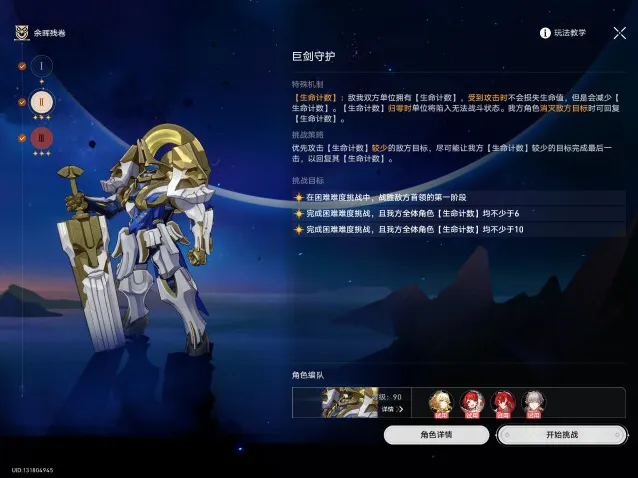在与「巨剑守护」任意难度的战斗中,我方角色累计回复12次[生命计数]