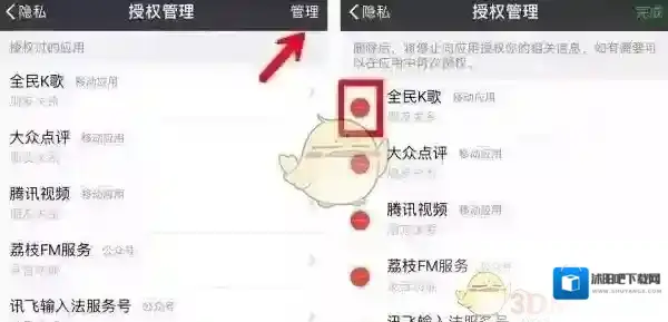 想要取消对哪一项的授权,只要单击“授权管理”在跳出来的界面选择“取消全部授权”即可。