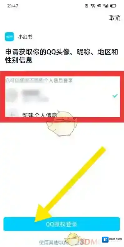 5、勾选QQ头像后,点击“QQ授权登录”,按提示操作即可。