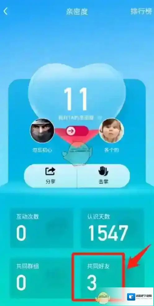 5、进入亲密度界面后,就可以看到共同好友有几个。