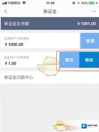 5、在保证金插件中点击解冻,如果您符合保证金解冻条件,保证金会进入解冻程序。