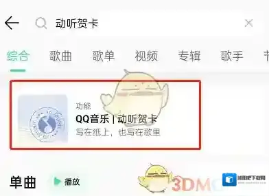 1、打开QQ音乐,点击搜索框,输入动听贺卡。