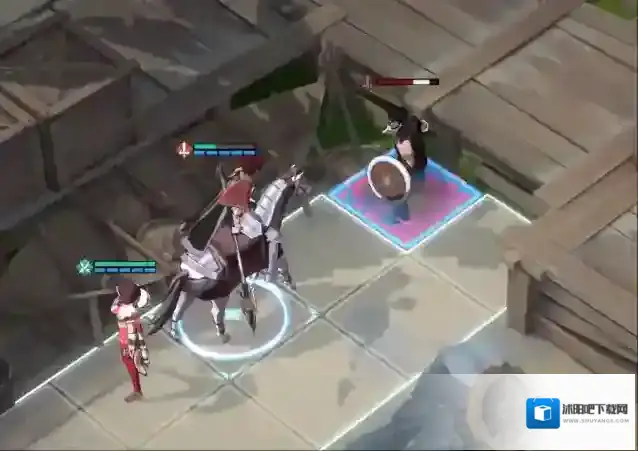 小怪攻高血厚,开局跟这些东西刚正面就是找死,必须先利用二次移动把角色们向地图右侧移动到如下图的位置,这样就能在不惊动左上角两名战士型敌人的情况下,只把这名盗贼型敌人勾引到墙边偷一次艾维迪特的屁股诱发反击。
