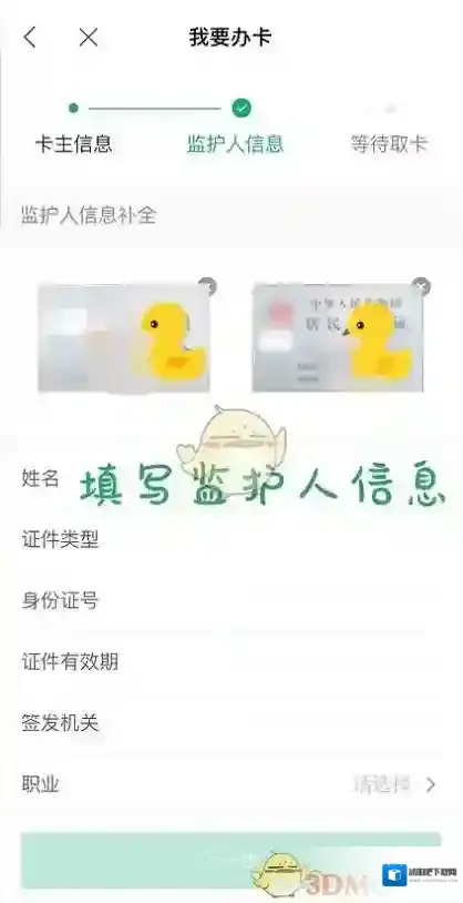 4、填写监护人信息,然后点击下一步,即可开始等待取卡: