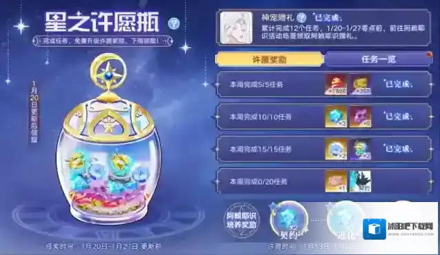2.累计完成5/10/15/20个任务,可向星之许愿瓶依次叠加许愿奖励,领奖时间内可领取: