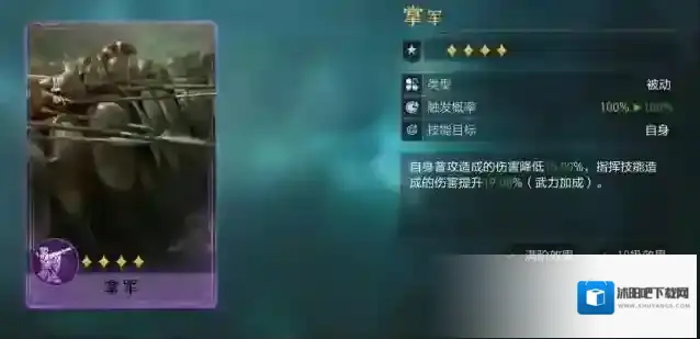 50%附带3秒25%伤害的溃散,折算平均就是3×25%÷2=37.5%,算上原有的60%反击伤害,综合伤害率达到了97.5%,比同为四星技能的反击要高,属于新的总比旧的好系列了。推荐阵容最优解无疑是溃散反击枪,完美契合。06 掌军