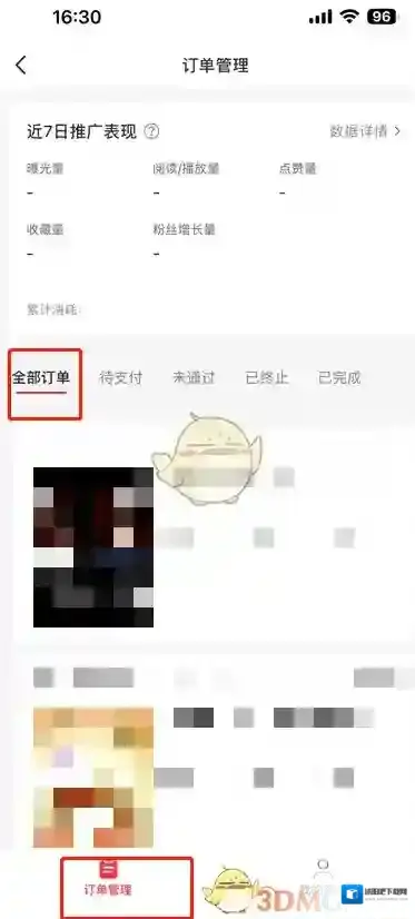 4、最后进入薯条推广的页面之后,就能看到具体的订单了。
