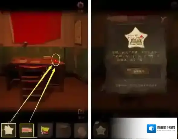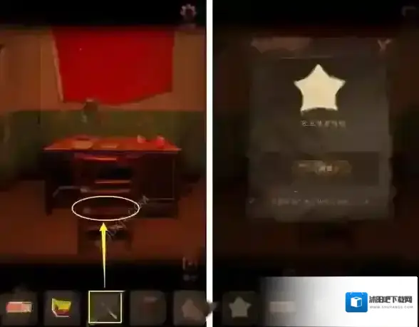13、接着我们点击打开桌上台灯,从台灯、五角星信纸、窗户以及柜子左侧天平线索,对左边墙盒子使用粉笔输入密码即可得到检讨书。