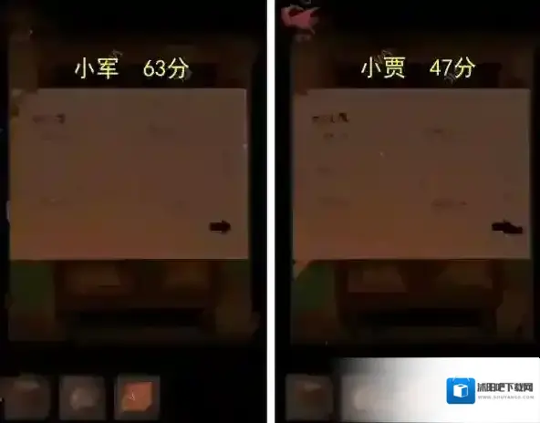 4、我们点击桌上课本,看柜子中试卷,计算小军以及小贾分数即可获得密码:6347。