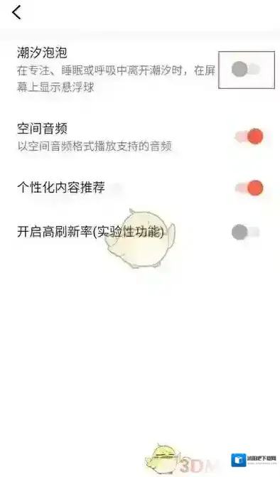4、在更多功能界面可以看到潮汐泡泡选项,点击后面的开关选项即可。