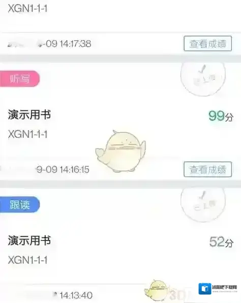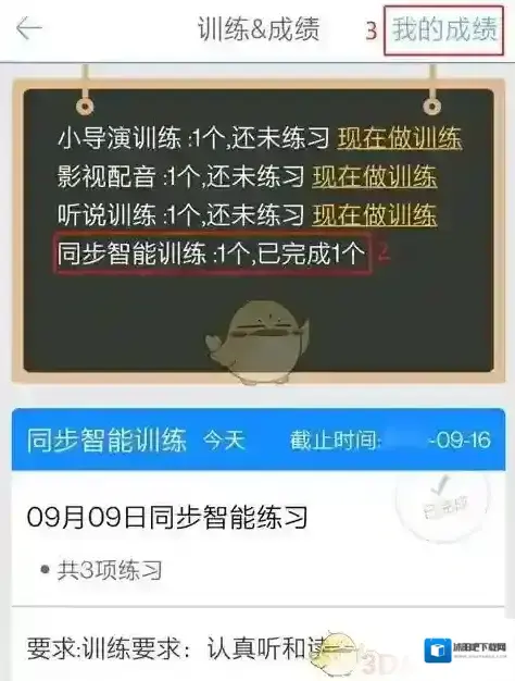 位置1为作业进度,杠满且显示已完成即可;位置3“我的成绩”本地保存训练记录。