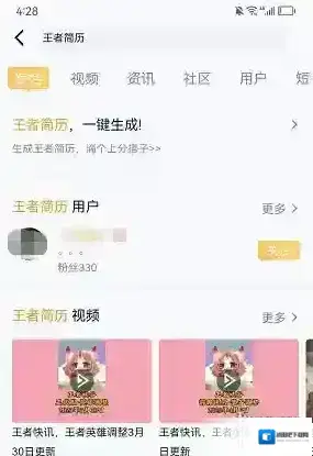 3、在搜索框中输入王者个人简历,或者直接点击下方的搜索词。