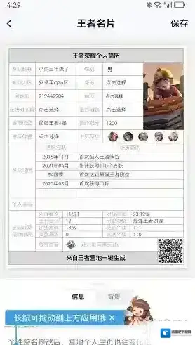 5、最后将自动生成的王者荣耀个人简历保存,即可分享给好友。