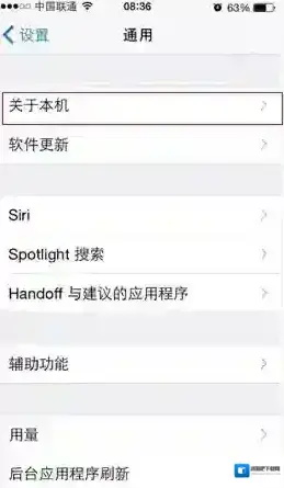 2、在通用主菜单中,找到并点击关于本机,如下图所示: