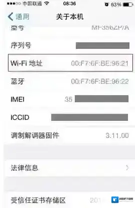 3、在关于本机的主菜单中,Wi-Fi(或无线局域网地址)即为设备的MAC地址。