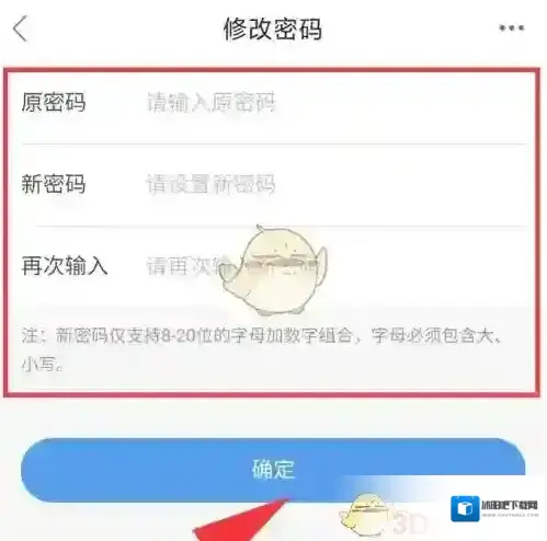 4、根据页面要求输入原密码和新密码,然后点击下方的”确定”选项,新密码就修改完成了。
