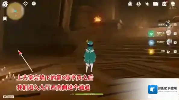 拿完残页8之后,依然是这个大厅,我们这次走大厅西南侧这个通道进去。