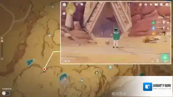 从避让之丘传送锚点触发,到图示位置后视角向西,从这里进入地下遗迹。