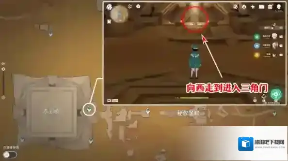 过了三角形门之后,不远处就是分岔口,这里我们要走左边。