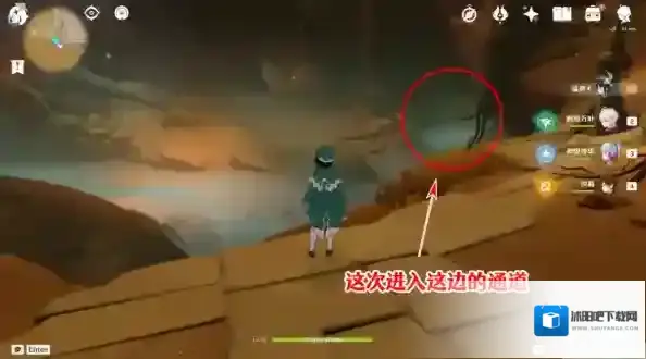 出去以后往西北边低处看,从圈起来的这个洞进去。