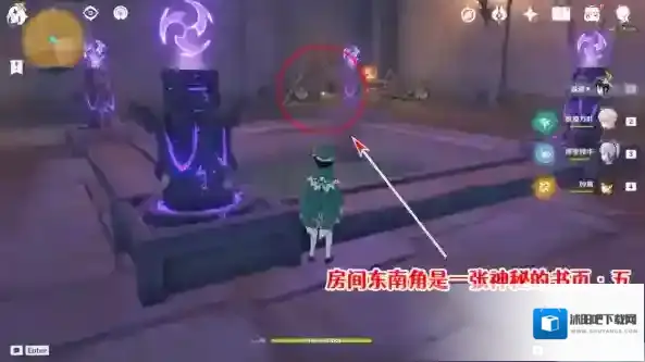 上去以后是一个有4个雷元素方碑的房间,我们到房间有4个元能构装体残骸的墙角,就可以拿到这里的残页5。