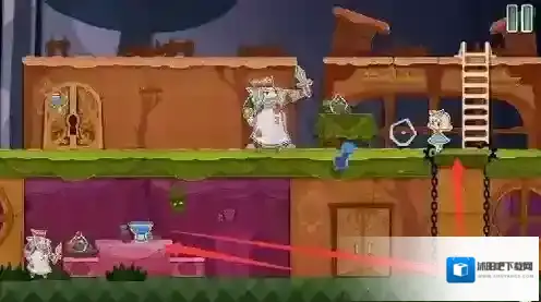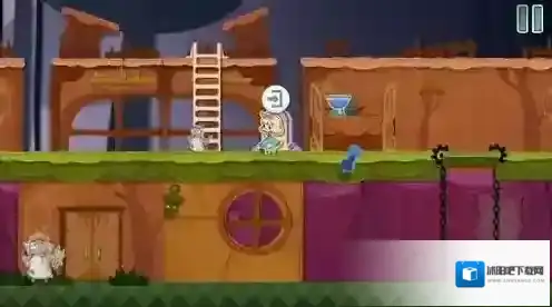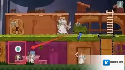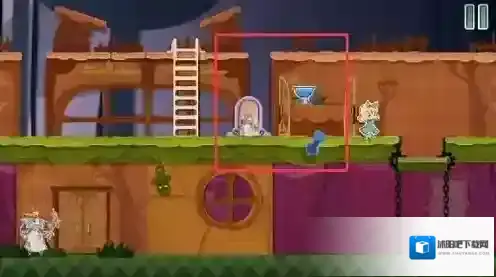 3.顺着梯子向上爬,按下拉杆将变小药水的方块抬高。
