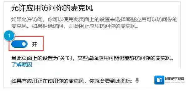 6. 检查是否允许应用访问我们的麦克风,如果开关面板显示为关,也要切换为开