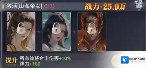 战力:250000、提升:所有仙将合击伤害+10%,神力+100。