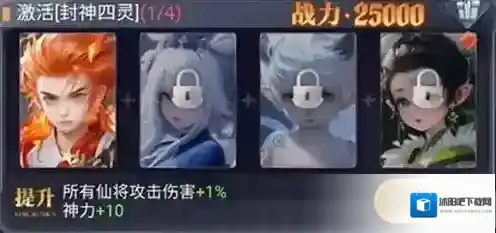 战力:25000、提升:所有仙将攻击伤害+1%,神力+10。