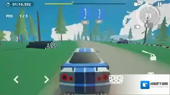 6、正式开始后左侧控制车辆的转向,右侧分别是车辆的油门、刹车和手刹。