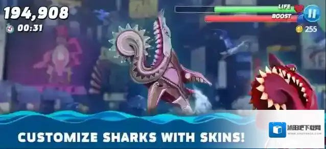 1、有很大的鲨鱼可以让玩家去选择使用,丰富的装备可以自由搭配来打造不同的鲨鱼。