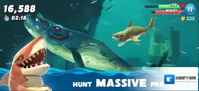 同饥饿鲨进化一样,都是一些,通过慢慢积累金钱,获得更强大的鲨鱼但是这里的鲨鱼更加的多种多样,地图也更加丰富,后续还增加了一些基因变异的鲨鱼,有特异技能,我也是挺喜欢的,玩到后期会非常爽。