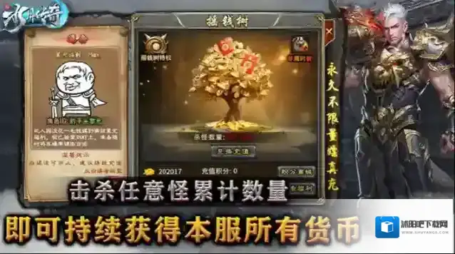 4、摇钱树:不需过多介绍,陪伴你从开局到封神的福利功能,每击杀100只任意怪即可兑换一次充值,永久不限量嫖真充和元宝。