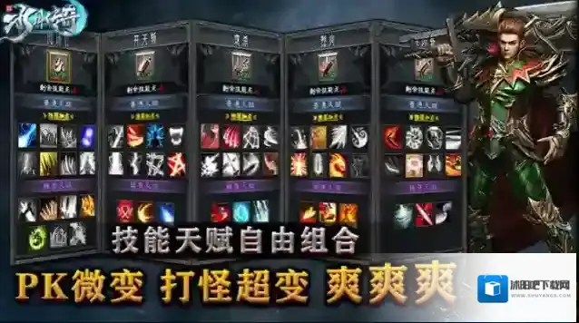 2、三职业落地解锁全部技能,所有职业落地送全屏彻地钉,更有特色天赋系统助你打造各种特色流派玩法。