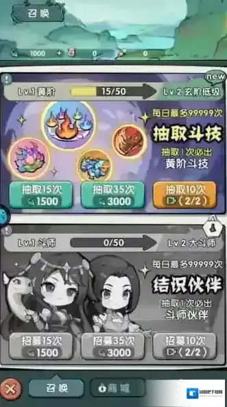 3、玩家还能通过召唤斗技来增强自身实力,在成功抽取斗技后要及时装备上,斗技还可以进行升级,以提升其威力。