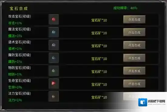 10个宝石矿可合成初级宝石,3个初级宝石可合成中级宝石,3个中级宝石可合成高级宝石。